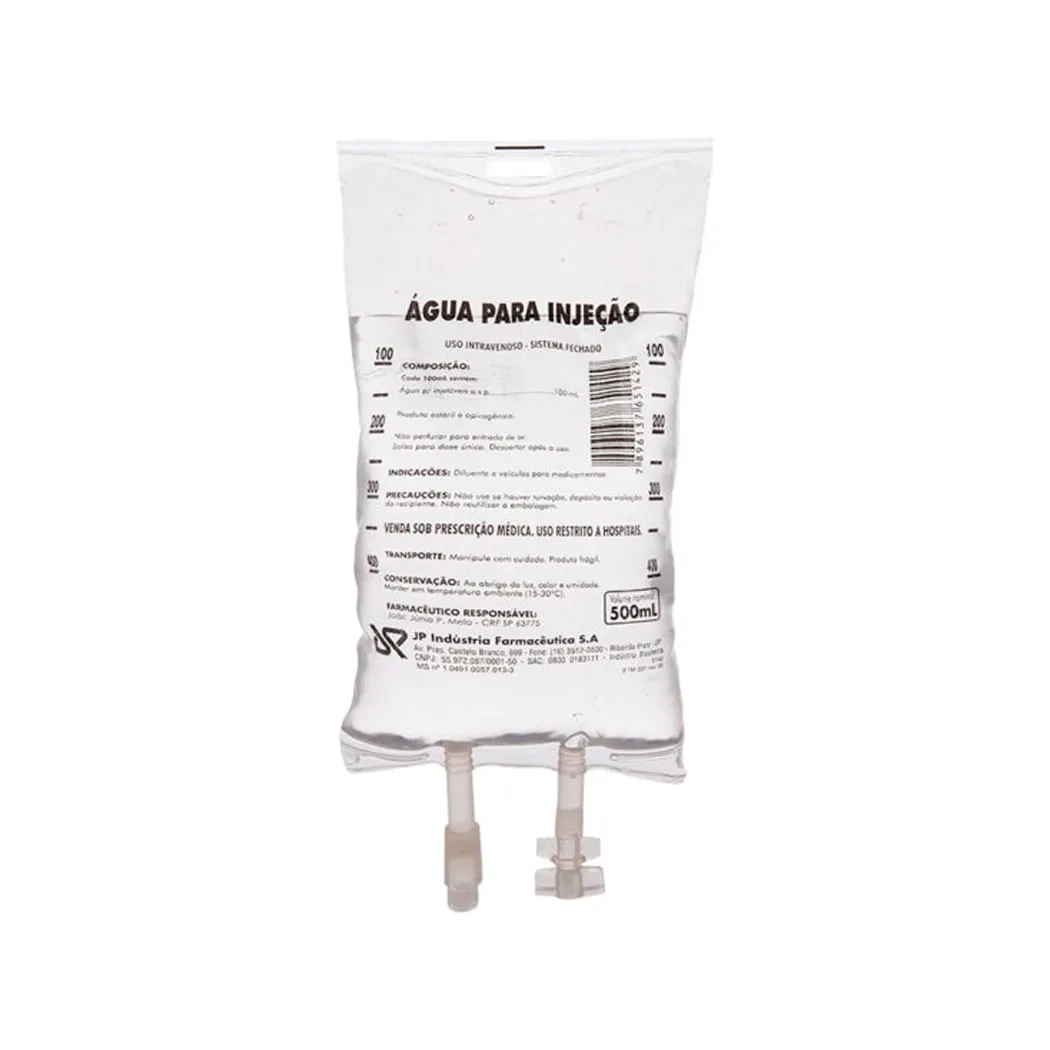 AGUA P/ INJEÇÃO BOLSA 500ML – CX C/20 (H);JP INDUSTRIA