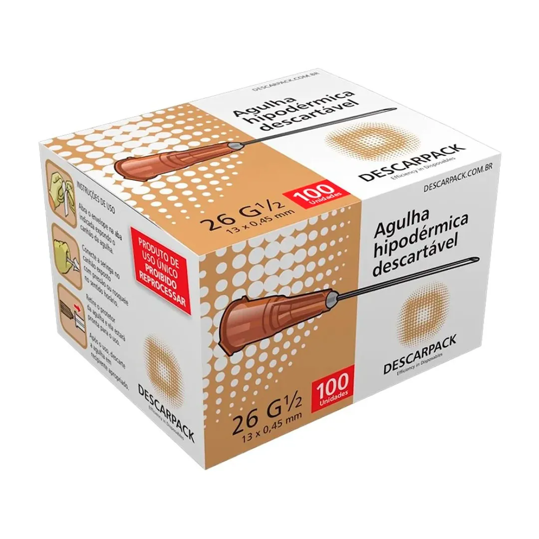 AGULHA 13MM X 0,45 (26G) MARROM – CX C/100;DESCARPACK