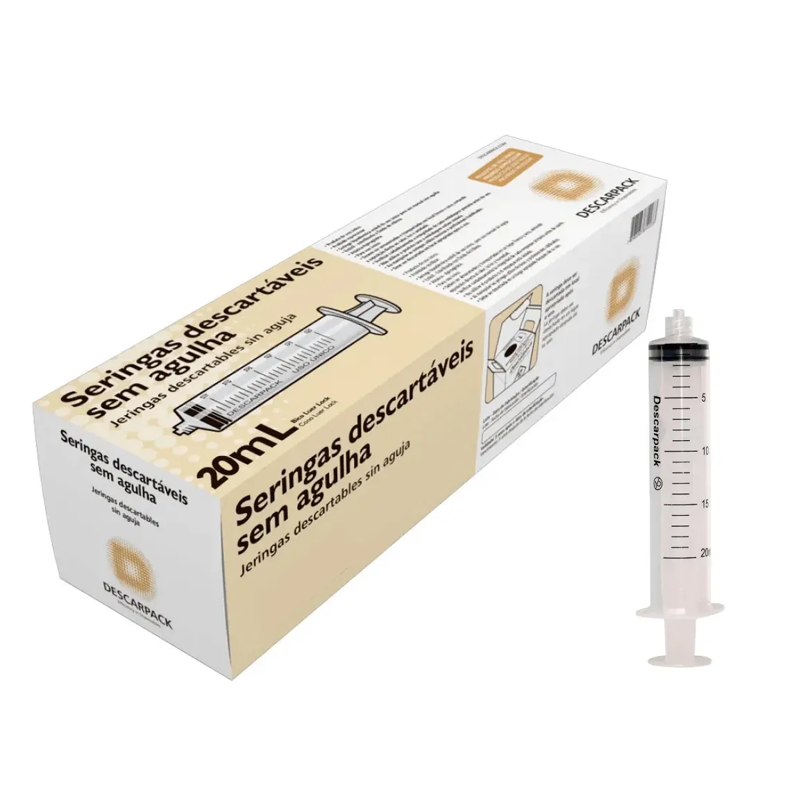 SERINGA 20ML SEM AGULHA – CX C/50 – LOCK;DESCARPACK