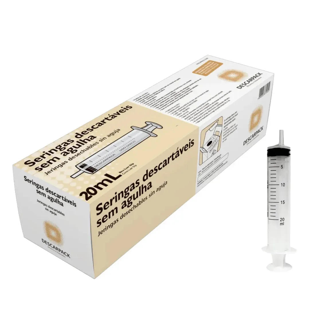 SERINGA 20ML SEM AGULHA – CX C/50 – SLIP;DESCARPACK