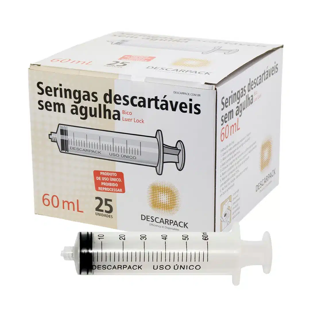 Seja o primeiro a avaliar “SERINGA 60ML SEM AGULHA – CX C/25 UND – LOCK;DESCARPACK”