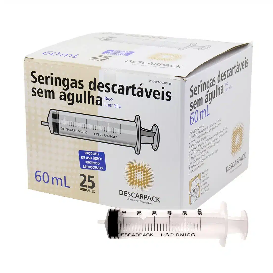 SERINGA 60ML SEM AGULHA – CX C/25 UND – SLIP;DESCARPACK